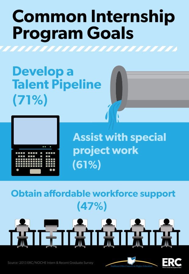 As the school year begins to wind down, your organization may be looking to hire some additional support over the summer in the form of a college intern. While each organization will undoubtedly vary in terms of the specific needs the internship is designed to fill, the results of the 2013 ERC/NOCHE Intern & Recent Graduate Survey strongly suggest that in general, organizations hiring interns are doing so with a common set of goals in mind.