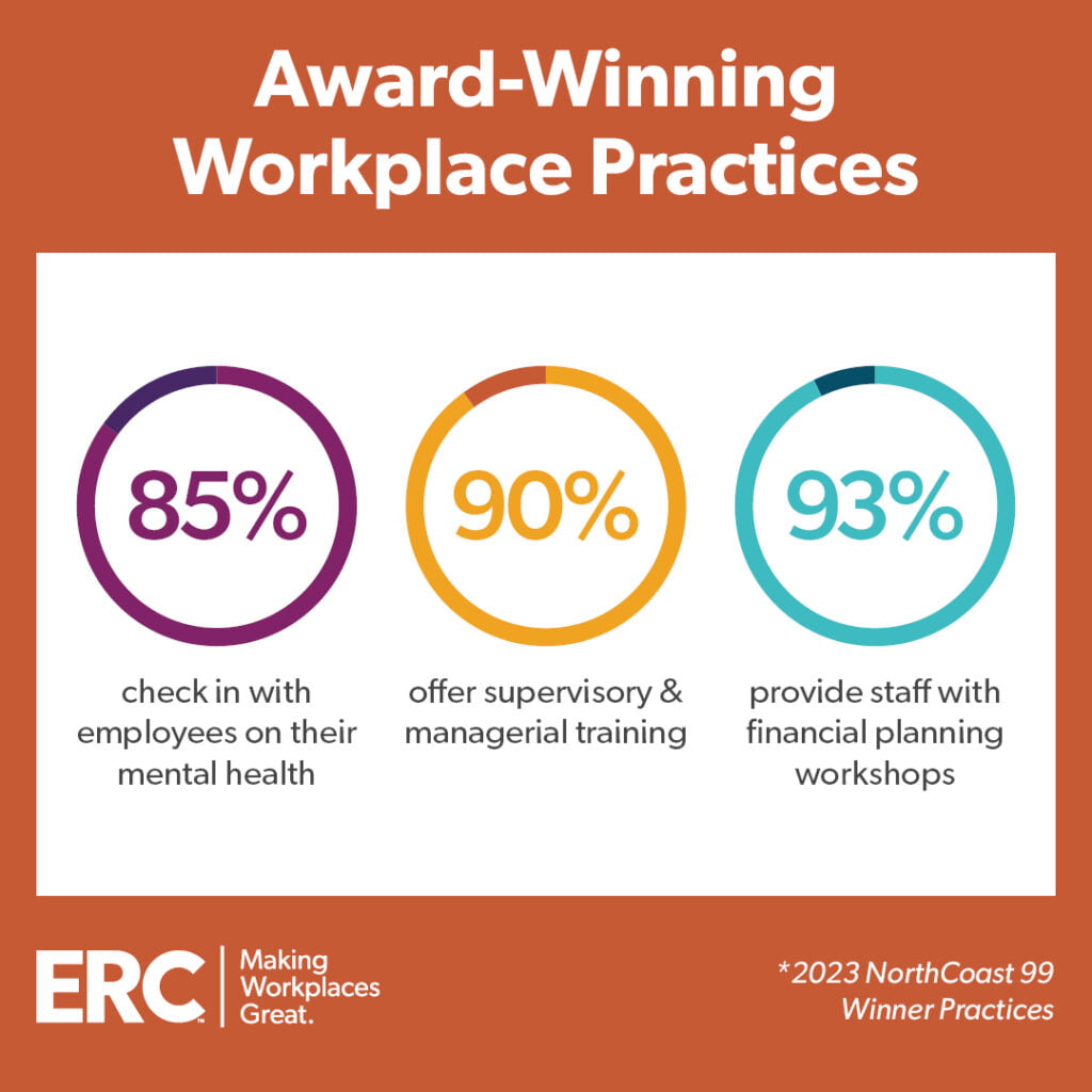 - The concept of leadership has also undergone a significant transformation. More than ever, leaders are expected to be empathetic, adaptable, and supportive, fostering an environment that encourages creativity, initiative, and continuous learning. Leaders at the 2023 NorthCoast 99 winning companies recognize that a healthy workforce is the bedrock of sustainable success, and as a result, are placing a greater emphasis on employee well-being. Roughly 85% of the winners have an established practice of checking in with employees on their mental health and 93% provide staff members with financial planning workshops.
