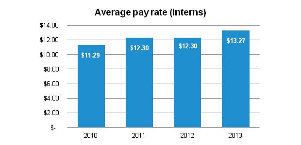 Although there is still some debate over paid versus unpaid internships, the 2013 survey indicates that the vast majority of internships are paid. In fact, after stagnating from 2011 to 2012, the average hourly pay rate for interns across all fields of study saw an increase of nearly one dollar in 2013. While certain fields saw larger increases than others. For example, engineering interns are making more than interns working in the non-profit sector- but these differences were largely unsurprising and fall largely in line with overall compensation trends for their respective industries more generally.