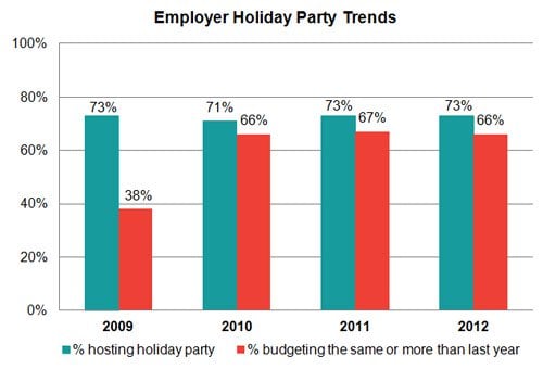 Christmas PartyEmployee Relations & Performance ManagementHoliday BudgetHoliday PartyOffice PartyParty BudgetWorkplace Policies & Practices Holiday Party Budgets Continue to Grow August 11, 2023December 5, 2012 Liz Maier-Liu The percentage of employers hosting holiday parties has hovered just under the 75% mark for several…2 minute readRead More