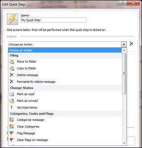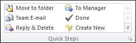 Managing and staying on top of your email is important to everyone. With Quick Steps (a feature in Microsoft Outlook 2010 and 2013) you can apply multiple actions at the same time to email messages. This helps you quickly manage your mailbox. For example, if you frequently move messages to a specific folder, you can use a Quick Step to move the message in one click. Or, if you forward messages to your manager or peers, a one-click Quick Step can simplify the task.