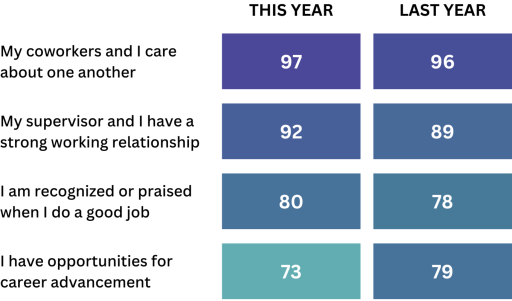 In addition to a comprehensive results report featuring recommendations correlated to increased engagement, we’ll facilitate a review of the results with your leadership team. You’ll be able to view survey results by demographic group to better understand engagement among different populations.